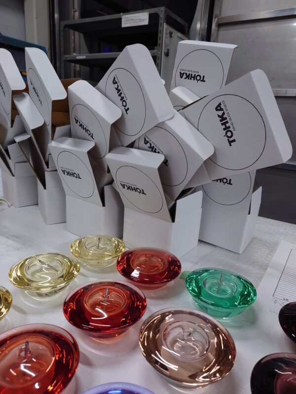 昨日はガラスのオイルキャンドルTOHKAの箱詰め作業しました。